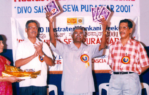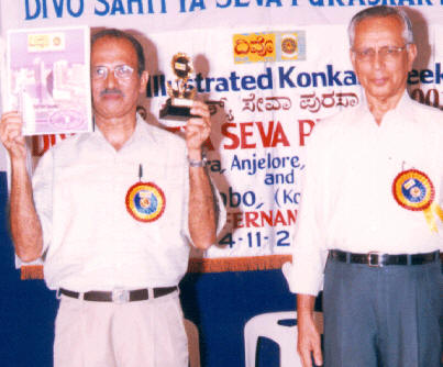 Kulshekar receiving momento from Mr. J. B. Moraes on behald of